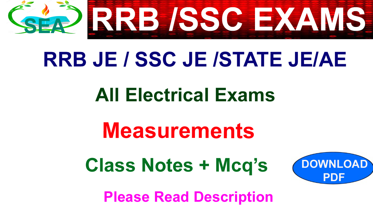 MEASUREMENTS HAND WRITTEN short notes +200 TYPED MCQ'S WITH EXPLANATION - as per RRB JE / SSC .....